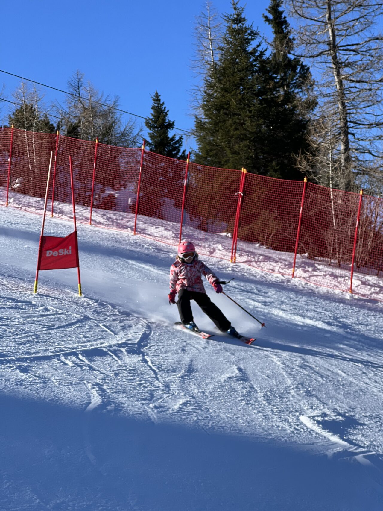 Podczas wyjazdu dzieci trenują na nartach przez 4 dni. Stawiamy na wysoką jakość szkolenia, dlatego zajęcia odbywają się w małych grupach – maksymalnie 6-osobowych. Poranne treningi na stoku prowadzone są z przerwą na lunch, a po południu organizujemy aktywności sportowe na świeżym powietrzu, takie jak rozciąganie czy treningi ogólnorozwojowe.